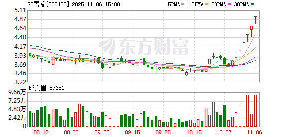 11月6日,ST雪发(002485)发布公告,公司股票在11月4日、5日和6日连续3个交易日,收盘价格涨幅偏离值累计超过12%。公司表示,近期经营情况正常,内部经营环境未发生重大变化。今日,公司收盘价为4.94/股。